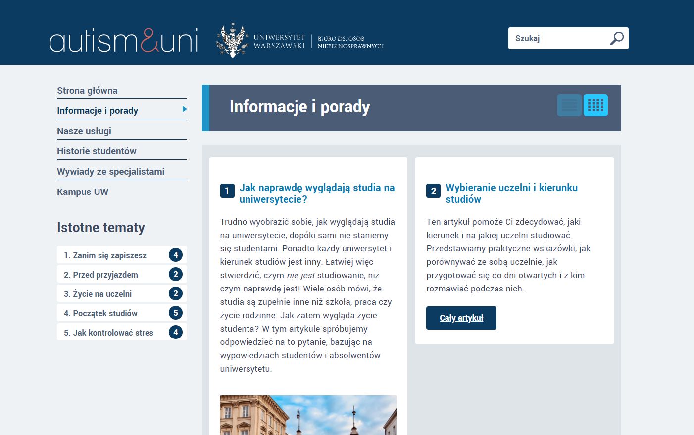 Dr Mateusz Płatos explains how the Autism&Uni toolkit complements an EU-funded project to increase accessibility for students with disabilities at the University of Warsaw. The University of Warsaw is the biggest higher education institution in Poland, offering courses to about 50,000 students in 21 departments. A part of the educational mission of the University is…